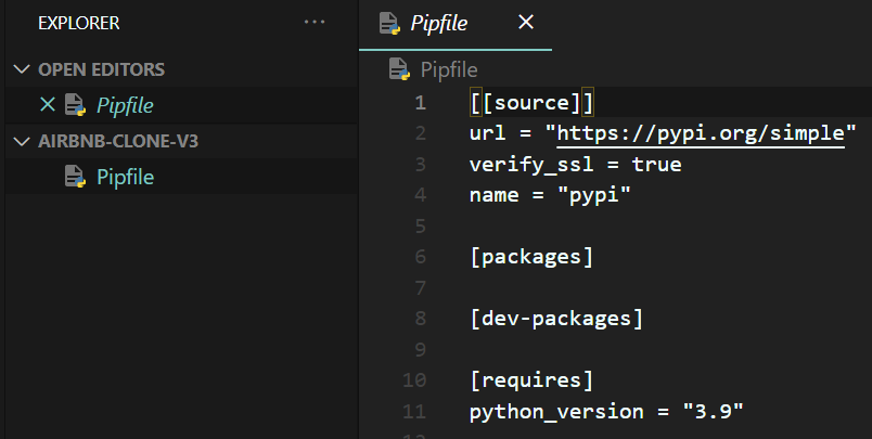 Create bubble 그러면 Pipfile이 생성이 된 것을 확인할 수 있다. 앞으로 설치하게 될 python module이 여기에 기록된다.