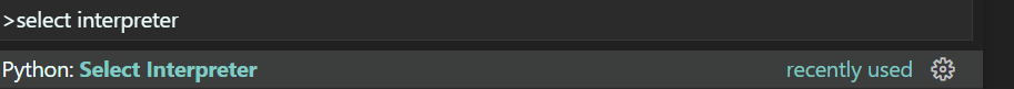 Python Extension window 기준 ctrl+shift+p를 누르고 select interpreter를 검색한다.