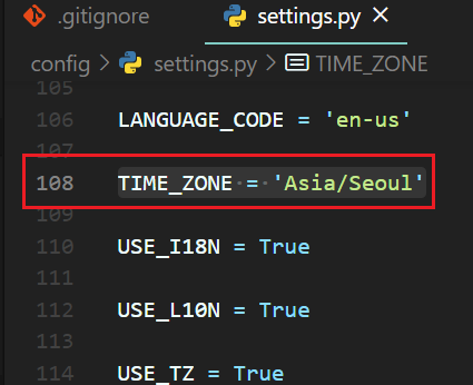 여기는 한국이니깐 TIME_ZONE을 'UTC'에서 'Asia/Seoul'로 바꿔주자.