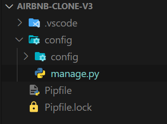 create django project 그리고 상위 config folder를 Aconfig로 이름을 바꾸고, 하위 config folder와 manage.py를 바꾸로 빼낸다. 그리고 Aconfig로 이름이 바뀐 빈 folder를 삭제한다. 디렉토리가 간소화 됬다.