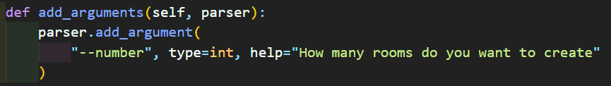 add_arguments() method는 option을 command에 option을 추가할 수 있는 method다. parser.add_argument()를 통해서 첫번째 인자로는 option의 이름을 준다. --(double dash)를 주면 optional arguments고 주지 않으면 positional arguments다. optional arguments를 주기 위해서 number 앞에 --(double dash)를 붙여줬다.