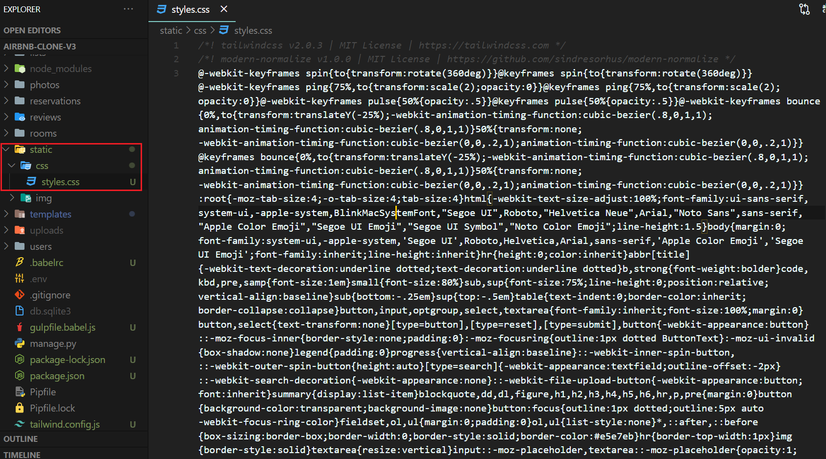 package.json $ npm run build 명령어를 사용하면 static folder에 css/styles.css 파일이 생성된다.