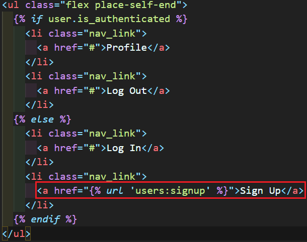 url template tag를 이용해서 signup page로 갈 수 있게 한다. {% url 'users:signup' %}은 /users/signup과 같다.