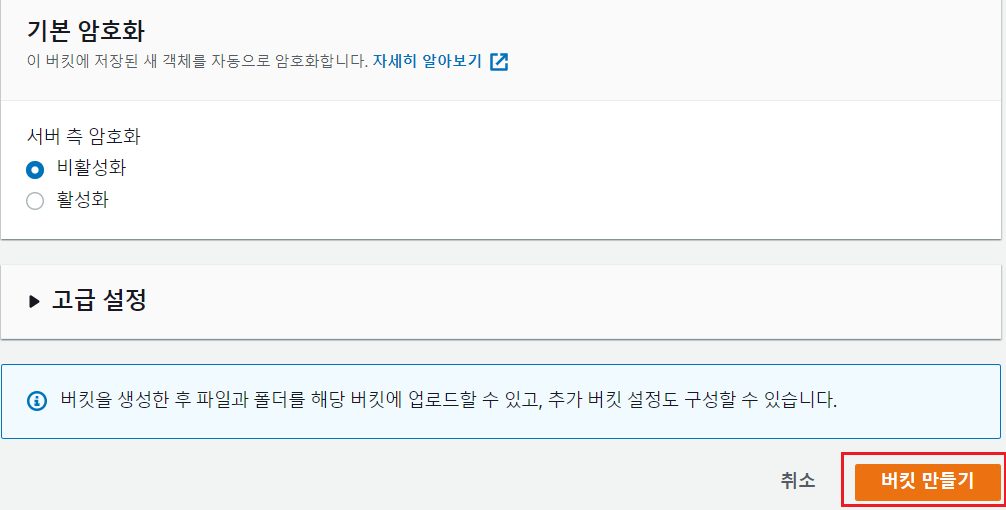 AWS S3 버킷 만들기를 통해서 버킷을 생성한다.