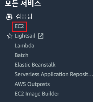 AWS Console 사이트에서 서비스 nav bar에서 EC2를 선택하자.