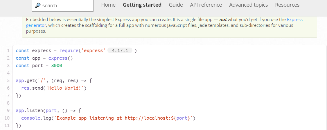 - express 공식 사이트 : http://expressjs.com/en/starter/hello-world.html
