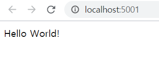 app.js 그리고 실행해보면 성공적으로 화면에 Hello World!가 보이는 것을 확인할 수가 있다.
