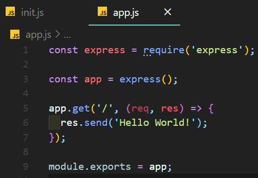 https://www.npmtrends.com/ 사용 방법은 expressjs에서 알려주는 방법대로 코드를 작성하면 된다. 나는 init.js와 app.js 파일을 만든 후에 코드를 두 파일에 나눠서 작성했다.