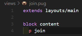 join.pug join.pug에서 extends로 layouts/main 파일을 불러오고 main.pug에 있는 block content에 'p join' 코드를 대입시킨다.