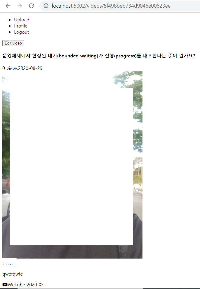 userDetail (0) 2020.08.29 videoPlayer.pug (0) 2020.08.29 Upload (0) 2020.08.29 Change password (0) 2020.08.28 editProfile (0) 2020.08.28