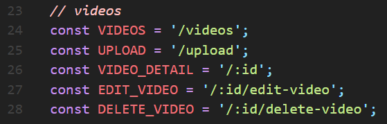 예를 들어, videoDetail()이 upload보다 위에 있을 경우, user가 localhost/videos/upload에 접속하게 되면 저 경로 접속하는 것이 아니라 videoDetail로 접속하게 된다. 왜냐하면 JS는 코드를 위에서부터 아래로 읽기 때문에 upload가 :id 값으로 인식한다. routes.js에서 정의한 :id는 변수를 뜻한다.