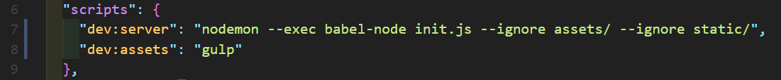 gulp를 실행시킬 수 있다. package.json에서 "scripts"에 "dev:assets" : "gulp"를 설정함으로써 gulp를 실행시킬 수 있다.