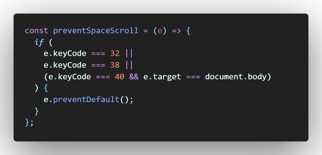 handleKeydown() 화살표 위 아래 방향은 scroll에 영향을 미치기 때문에 preventDefault()를 해줘야 한다.