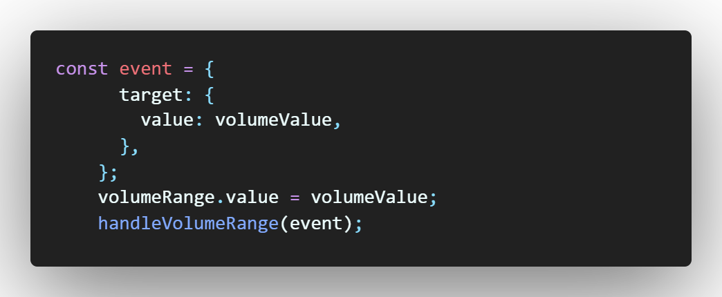 그 이후에 handleVolumeRange()가 parameter 받을 수 있도록 객체를 생성하고 parameter를 넘겨준다.