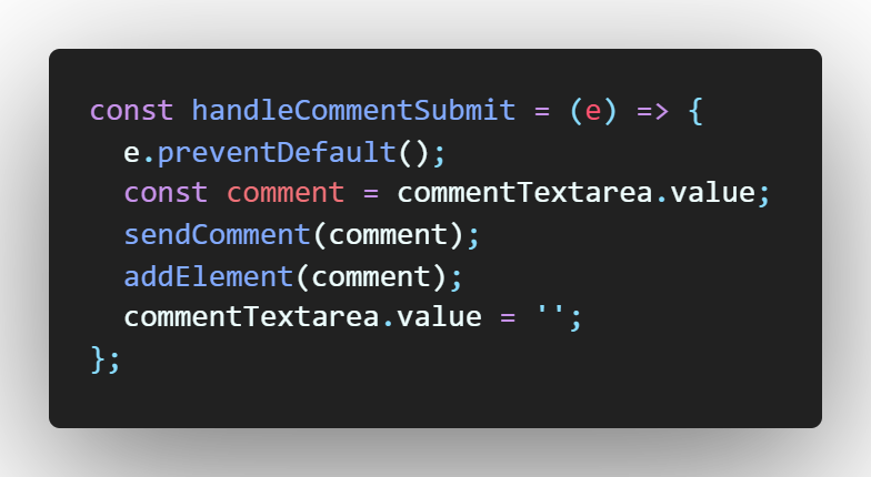 addComment.js user가 comment를 전송하면 handleCommentSubmit()을 실행한다.