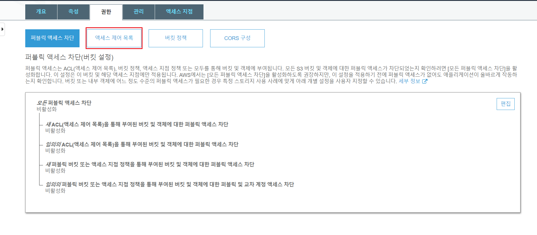 '퍼블릭 액세스'에서 Everyone을 클릭하고 오른쪽 항목들을 모두 check 해준다. 그 후 저장한다.