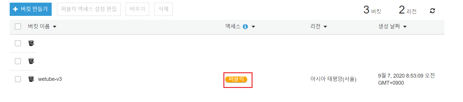 bucket wetube-v3가 public이 된 것을 확인할 수가 있다.